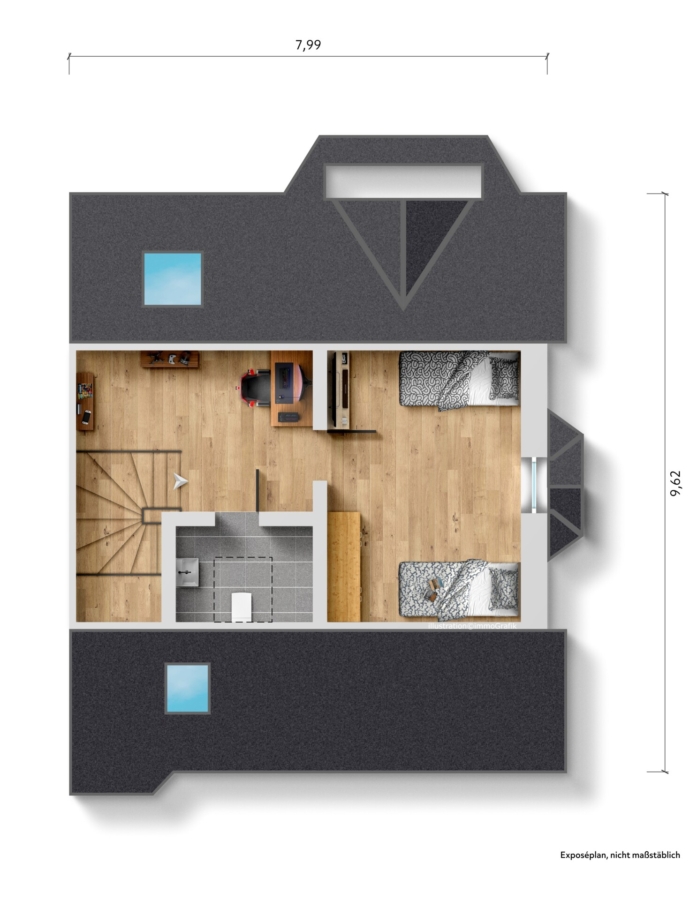 • Separates Gäste-WC im Dachgeschoss